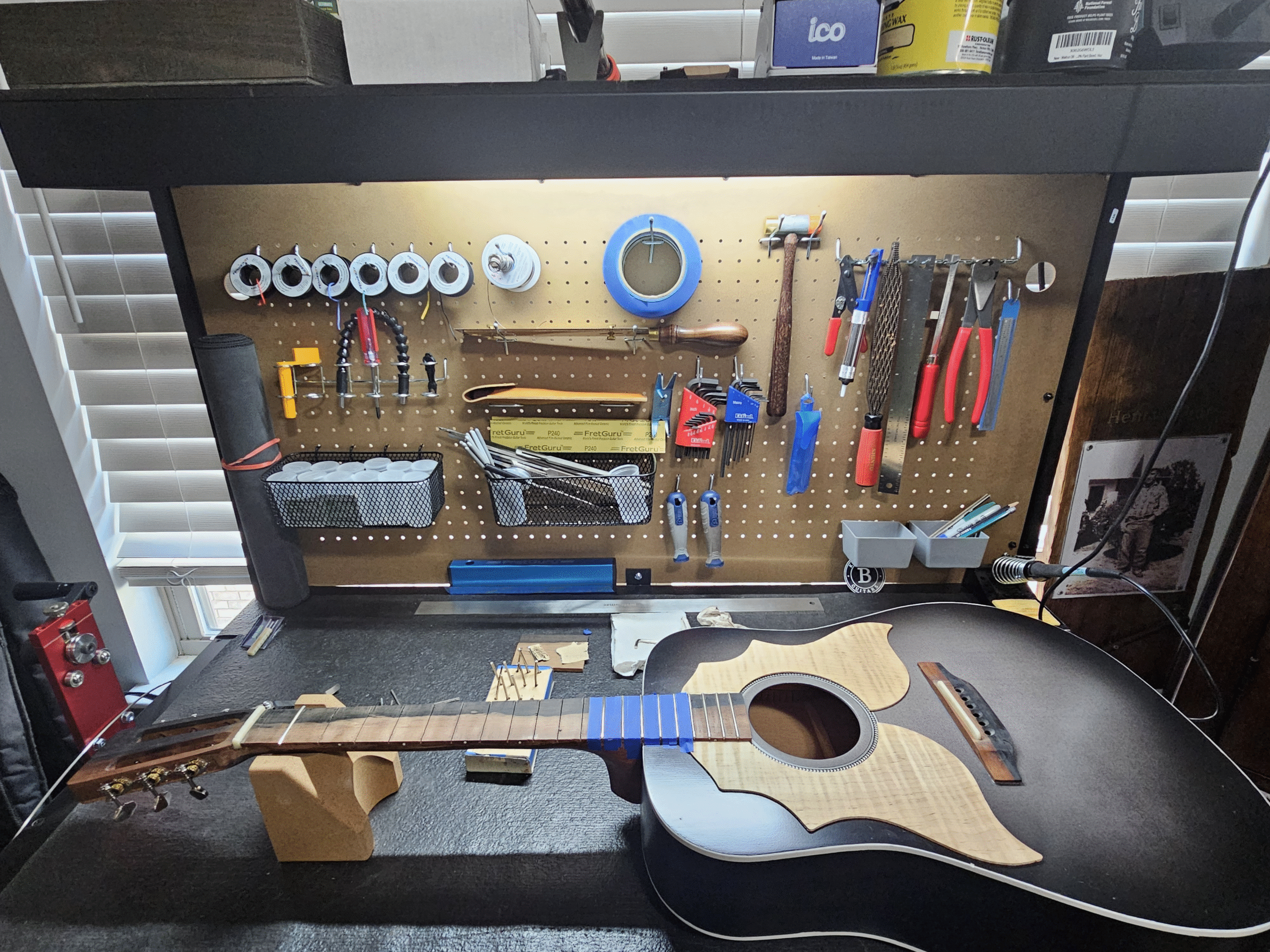Repairs Standard Bench Fees Set Up Re-Fret (Unbound Board) Re-Fret (bound Board) Fret Level & Crown Partial Re-Fret New Nut New Saddle Electronic Works Holly Body Electronices Pick Up Install No Caption No Caption No Caption No Caption